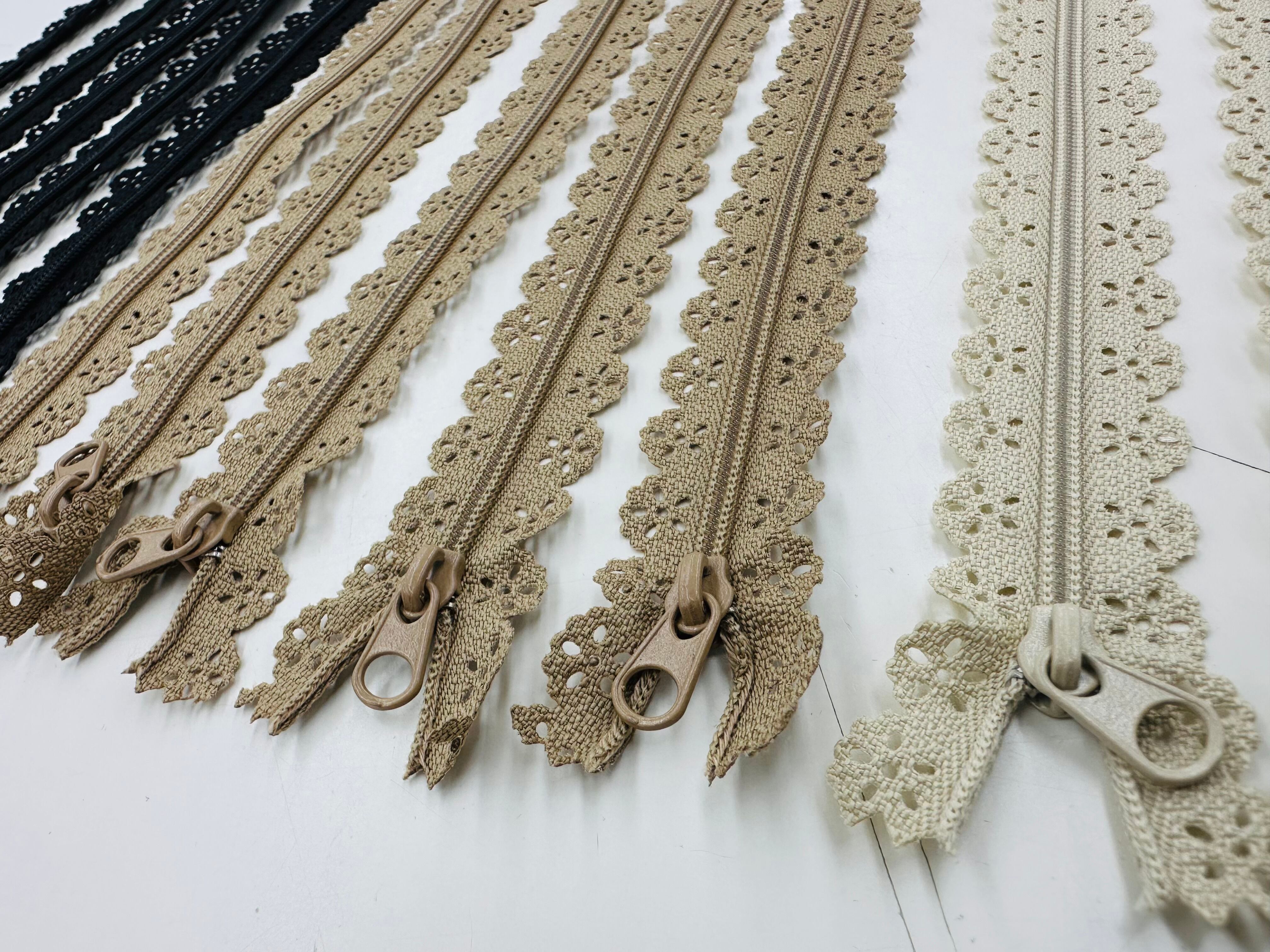 レースファスナー、20cm 各5本の15本セットが登場!可愛らしいレースデザインが施されたファスナーは、ポーチや様々な手作りアイテムにぴったりのアクセサリーです。あなたの作品に華やかさをプラスし、特別な仕上がりを楽しむことができます!